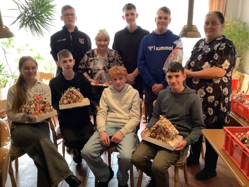 Unsere Marianne-Buggenhagen-Schule hat heute am 24. November 2025 ein Lebkuchenhaus von der Bäckerei Silberbach aus Wernigerode gesponsort bekommen.