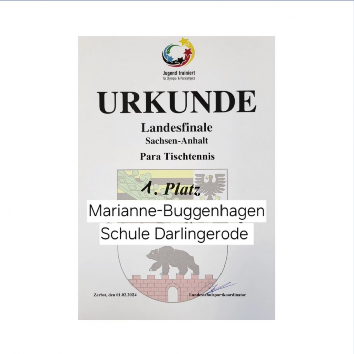 Sieben Mannschaften aus ganz Sachsen-Anhalt kamen zum Regionalfinle des Schulsportwettkampfes JTFP Para Tischtennis nach Gernrode. Wir hatten unseren Titel "Landessieger" zu verteidigen und den ersten Schritt dahin haben wir gemacht. Alle Sportler hatten sich im Vorfeld spielerisch und mental auf diesen Wettbewerb vorbereitet und das Training intensiviert. Siege in allen Spielen war der Lohn ihrer Bemühungen und Vorbereitungen. Herzlichen Glückwunsch! Stark gemacht!